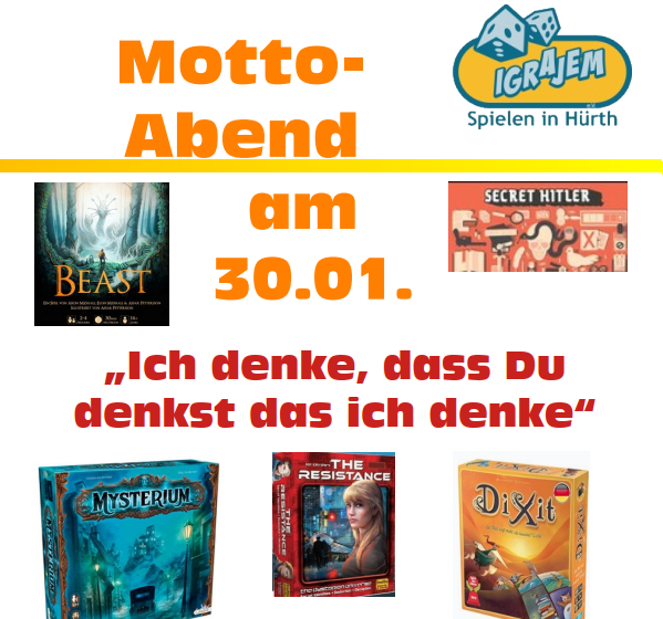 Wir freuen uns über jeden neuen Besuch. Zu Beginn werden meistens kurze Spiele gespielt, später dann längere und komplexere Spiele. Da jedoch jedes Spiel unterschiedlich lange dauert, findet man auch im Laufe des Abends immer zu neuen Spielrunden zusammen. Manchmal muss man ein bisschen warten, aber auch das Zuschauen macht oft schon Spaß. Ausserdem bekommt man so Einblick in Spiele, ohne selbst aktiv werden zu müssen.